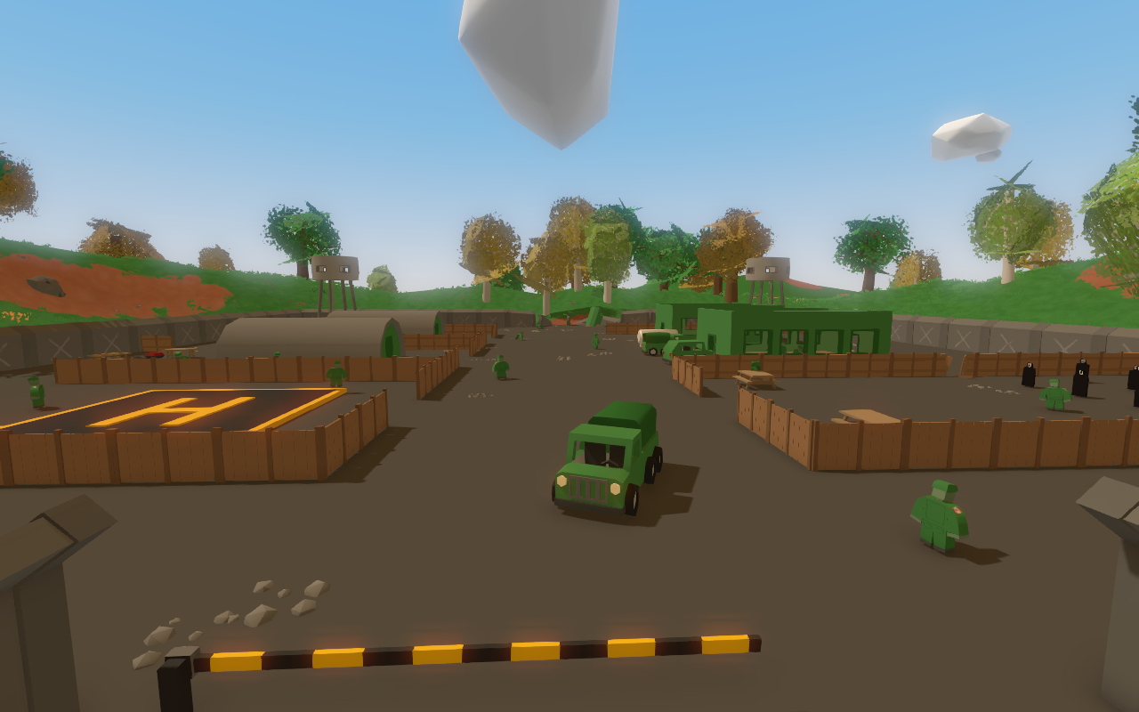 - Originally, there was a crashed military helicopter in the middle of the base. This was removed in a later patch.